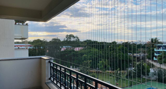 Keep pigeons away with Invisible Grills by Invisible Grills Experts. Durable and sleek, they ensure bird-free spaces while preserving your balcony’s open view and aesthetics.
