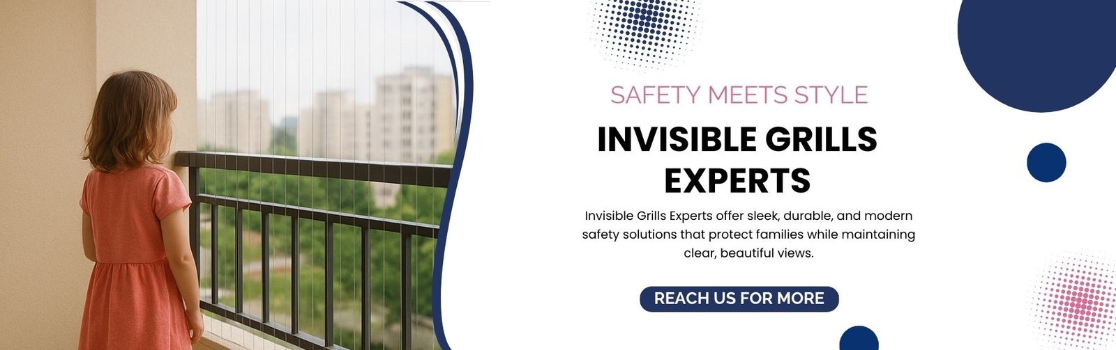 Ensure your child’s safety with Invisible Grills by Invisible Grills Experts. Strong, sleek, and rust-free, they provide reliable protection without blocking your view or ventilation.